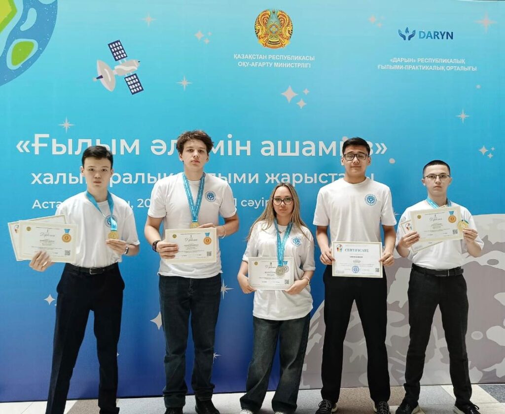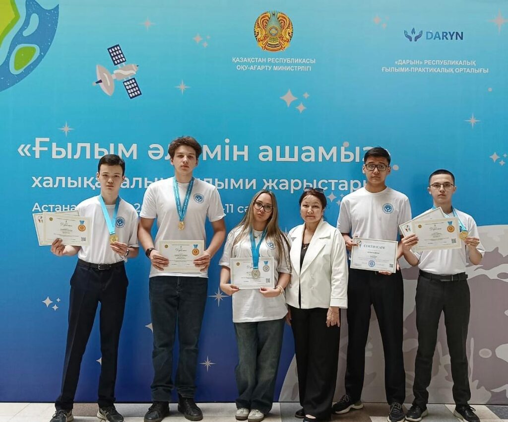 Халықаралық ғылыми конкурсының қорытындысы бойынша алтын медальдарына және І дәрежелі дипломдарына Қаныш Сәтбаев атындағы дарынды балаларға арналған мамандандырылған гимназиясының 9 сынып оқушылары Казтай Алижан мен Нуриденов Мансур (« Ғарыштық ақпараттық технологиялар және модельдеу» секциясы; мұғалімі Атик Б.В.) және Екібастұз қаласының дарынды балаларға арналған мамандандырылған №1 лицей-мектебінің 11 сынып оқушысы Башкатов Владислав («Биология және ғарыштық медицина» секциясы, мұғалімі Малахов С.Е.) ие болды.