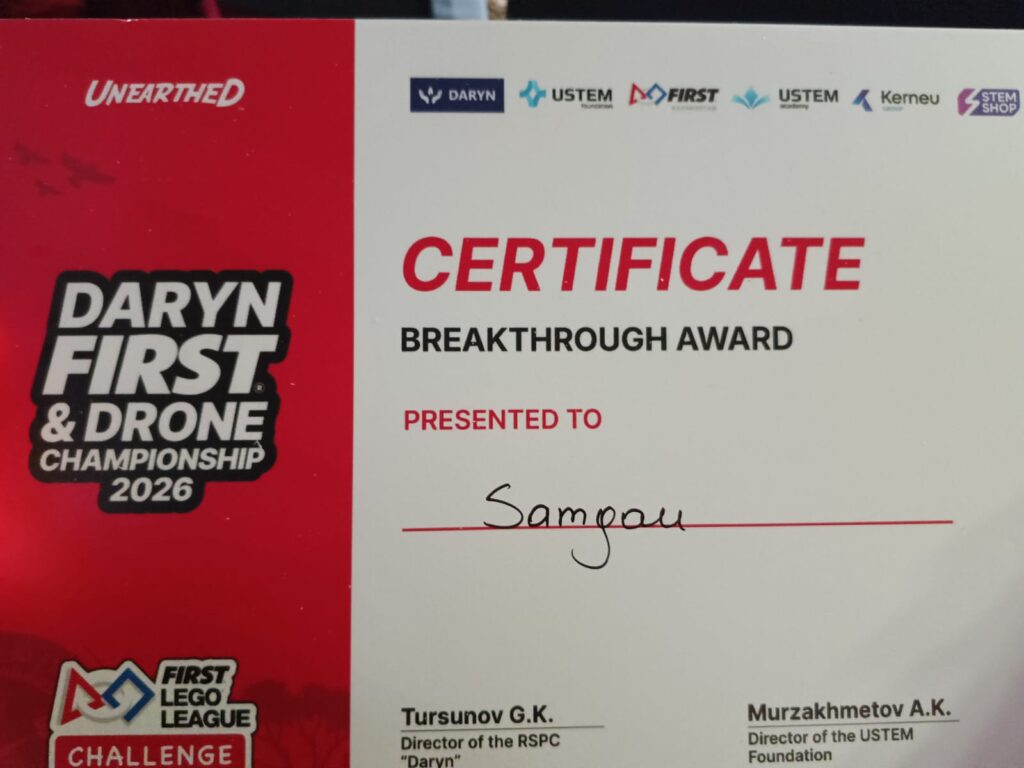 Роботтар фестивалінің қорытындысы бойынша «SAMGAU» командасы BREAKTHROUGH AWARD номинациясына ие болды.
